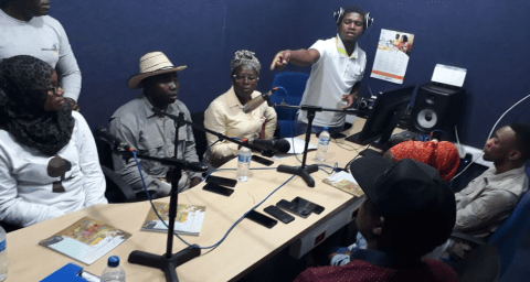 Community Liaison Officers enacting scenes from Amina’s Big Move to families from Milamba, the first village to have made the “big move” to Quitunda.