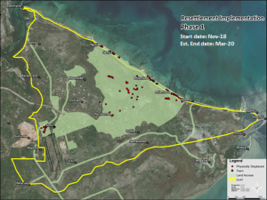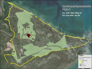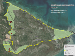 Here, we show the geographical extent of each resettlement implementation phase and its timeline.